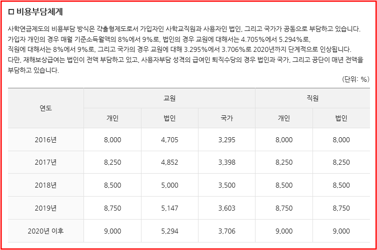 - 가입자 개인 : 매월 기준소득월액의 8%~9%