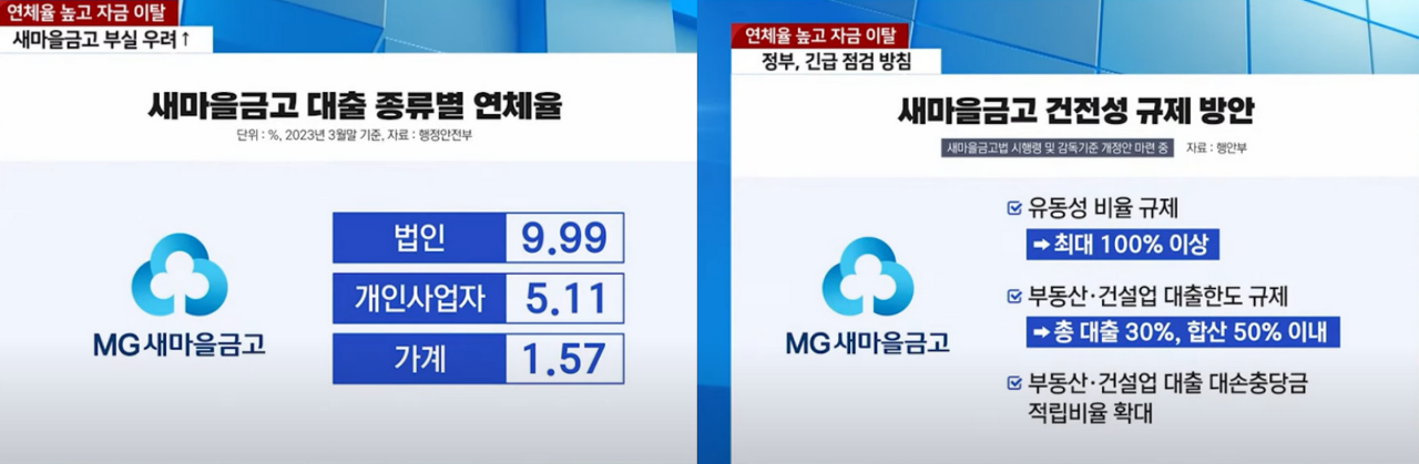 새마을금고 또한 이 pf대출 부분에서 큰 어려움이 생기면서 연체 등의 이유로 기존에 예금이나 적금을 둔 이용자들의 돈까지도 위험해진 것인데요. 일례로 수원서부 지점의 경우에는 연체대출그미 비율이 10% 넘어가면서 위험수치에 해당하고 있는 것입니다.